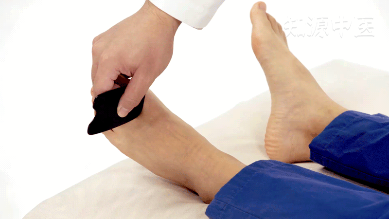 3.【针法】:向足跟方向斜刺0.1~0.2寸。