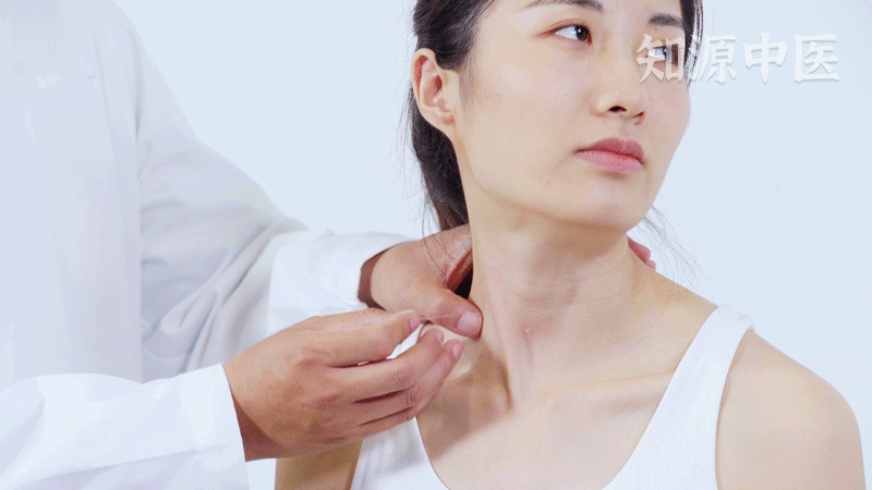 - 第2步:确定扶突穴:平喉结的胸锁乳突肌肌腹中点即为扶突穴。