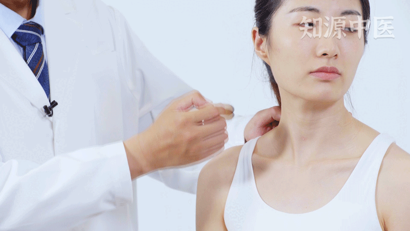2.【针法】:坐位,头转向对侧,浅刺0.2~0.5寸,不可向下方深刺。以防造成气胸,按压天鼎时可将臂丛上干压迫于手指第6~7颈椎的横突前缘之间,病人可感到肩顶部和同侧上肢麻木。