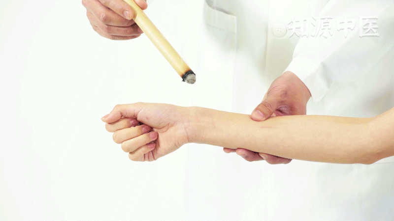 用艾条在距离皮肤3-5cm处对太渊穴进行悬起灸,每次艾灸10分钟左右,可以治疗咳嗽、胸闷、胸痛。