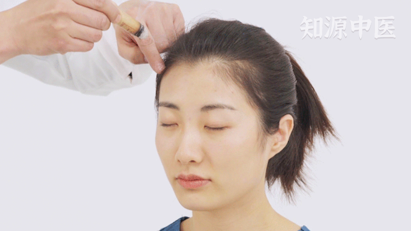 - 第2步:自瞳孔直上,入前发际量半横指(大拇指指间关节部位的横径为1寸)处,即为本穴。