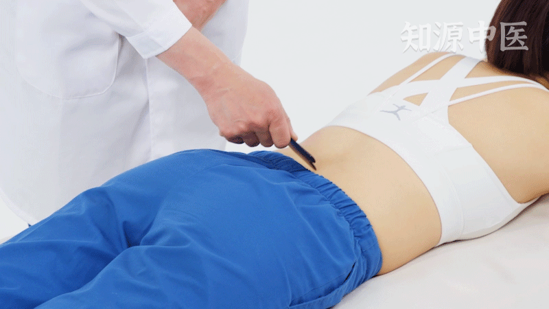 找到下极俞穴,用刮痧板与皮肤呈45°,使用角刮法,自上而下对下极俞穴进行单向地刮擦,以局部皮肤潮红为度,每次2-3分钟,可以辅助治疗遗尿,小便不利。
