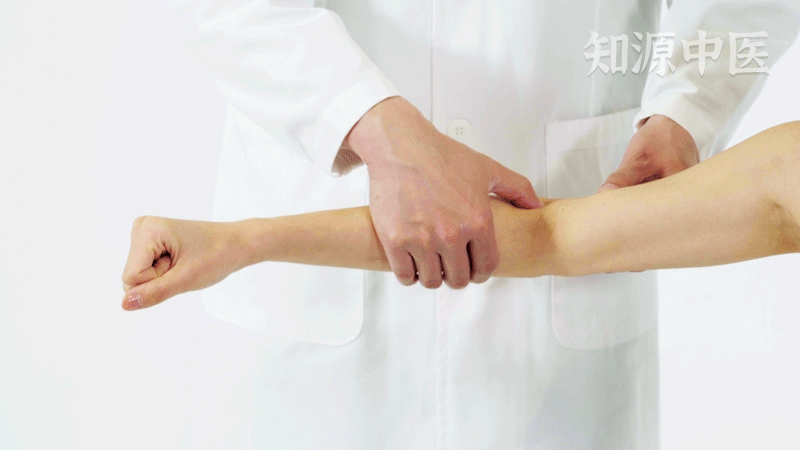 - 第2步:用一手食指(示指)沿肘横纹从外(桡)侧向内(尺)侧触摸,在肘弯正中可摸到一条粗大的筋腱(肱二头肌腱);