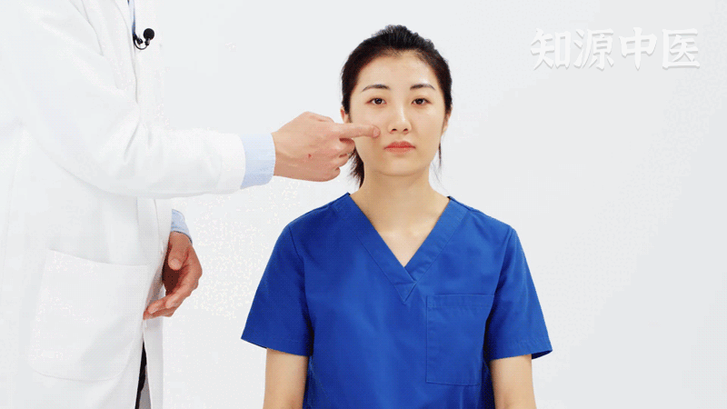 - 第2步:沿瞳孔垂直线向下轻推,至鼻翼下缘水平线处,即为本穴。