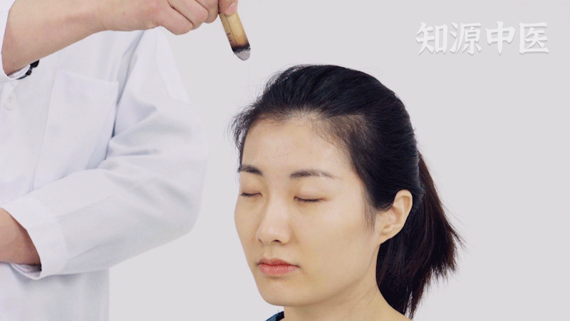 找到当阳穴,用刮痧板与皮肤呈45度,沿前发际由内向外单向的刮擦,每次2到3分钟,可以辅助治疗目赤肿痛。