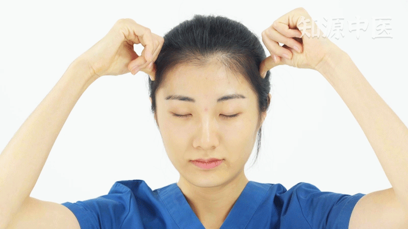用双手拇指置于双侧的悬颅穴上,对悬颅穴进行环状地按揉,每次3-5分钟,可以缓解头晕、头痛等证。