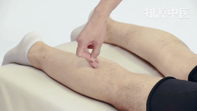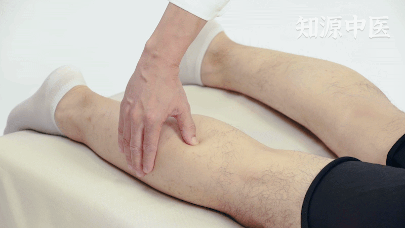 2.【其他常用取穴法】:正坐垂足,腓肠肌肌腹中央处取之,当合阳与承山连线之中点。