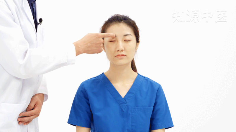- 第2步:皱眉,可见眉毛内侧端有一隆起,即为本穴。