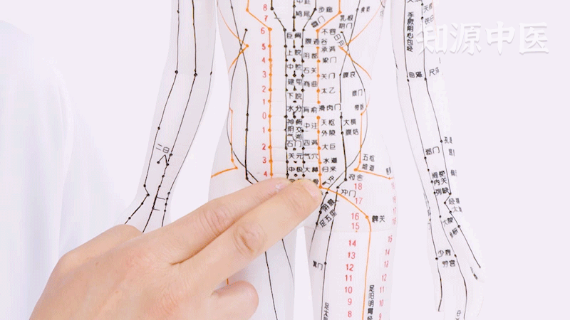 7.【中国大陆之骨度折量定位法—胸、腹、胁部横向、纵向标准】:根据骨度定位法,胸腹『横向标准』:两乳之间的距离为8寸。胸部『纵向标准』:以胸骨上窝(天突)至胸剑联合中点(歧骨)的距离为9寸。上腹部『纵向标准』:以胸剑联合中点(歧骨)至肚脐中的距离为8寸。下腹部『纵向标准』:肚脐中到耻骨联合上缘(曲骨)的距离为5寸。胁肋部经穴的『纵向标准』:腋窝顶点至第11肋游离端(章门) 的距离为12寸。