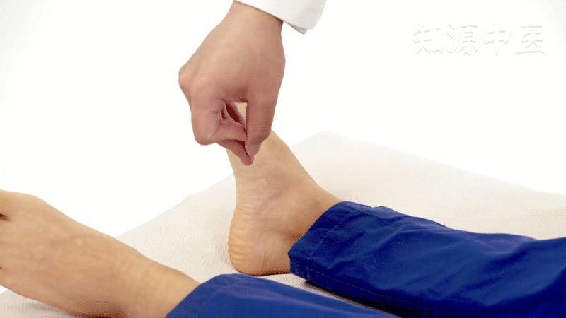 4.《针灸甲乙经》:在足内踝前一寸,仰足取之陷者中,伸足乃得之。