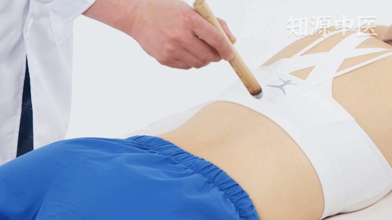 用刮痧板与皮肤呈45°,使用面刮法,自上而下对痞根穴进行单向地刮擦,以局部皮肤潮红为度,每次3-5分钟,可以辅助治疗腹胀、胃痛。