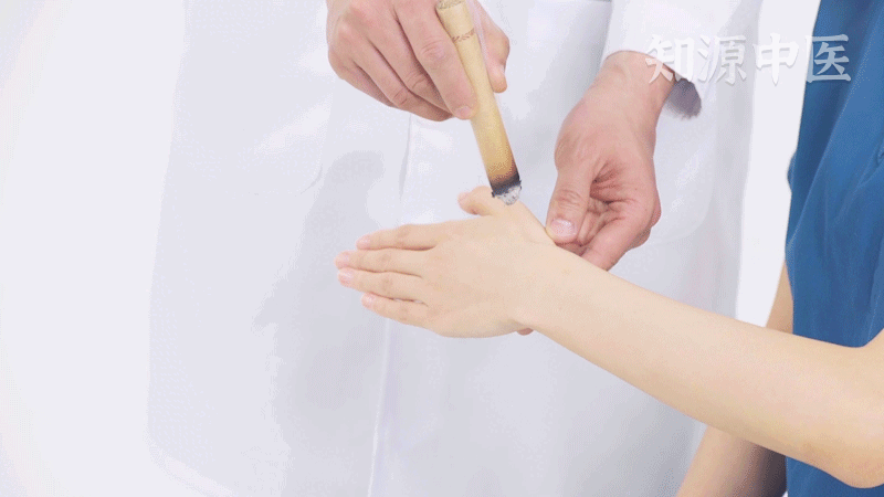 用艾条距离皮肤3-5cm,悬灸中泉穴,每次10-15分钟,可以辅助治疗反胃、恶心、呕吐。