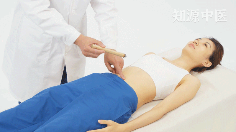 用艾条悬灸肓俞穴,距离皮肤3-5cm,每次艾灸10-15分钟。艾灸肓俞穴可有效缓解腹痛、腹胀、痢疾。