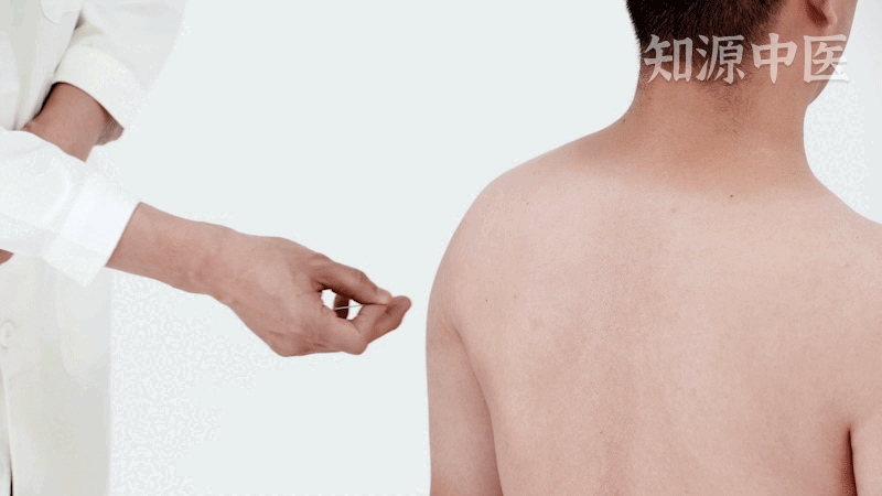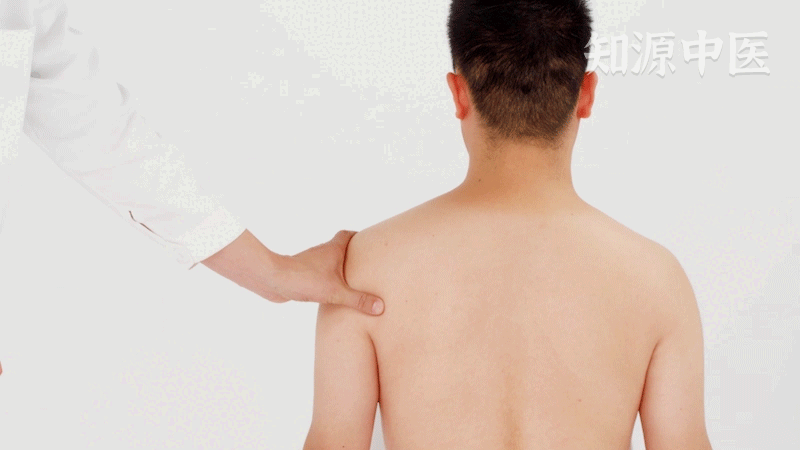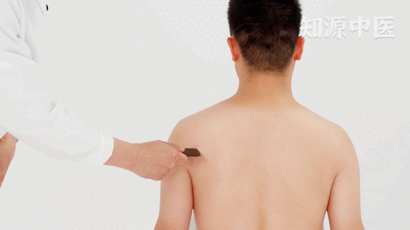 用刮痧板与皮肤呈四十五度,自上而下,对肩贞穴,进行单项地刮擦,以局部皮肤潮红为度,可以辅助治疗肩臂疼痛。