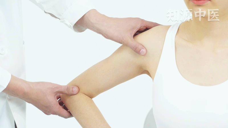 5.《循经考穴编》:膊骨端上两骨罅间,举臂平肩陷中(另有一说当微前些),下直对曲肘缝尖,须搁臂纵或转手插腰,缓缓下针。
