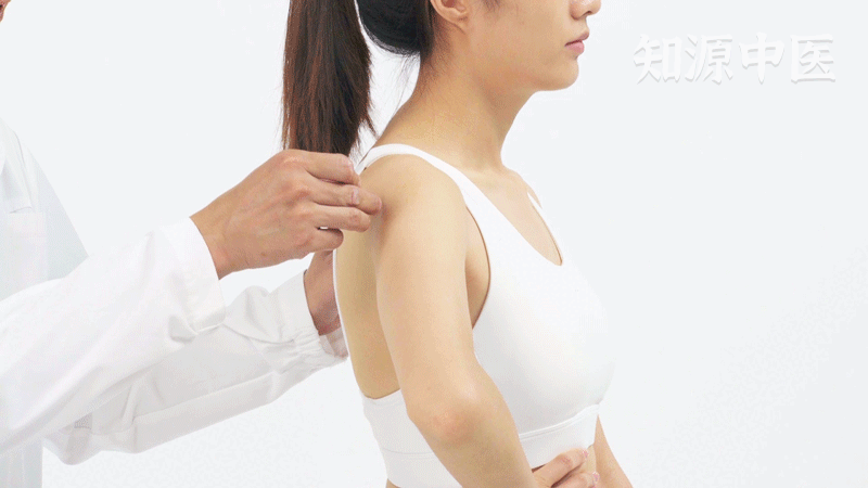 - 第3步:在三角肌的后下缘,肩部最高点(肩峰)直下处有一凹陷,按压有酸胀感,即为本穴。