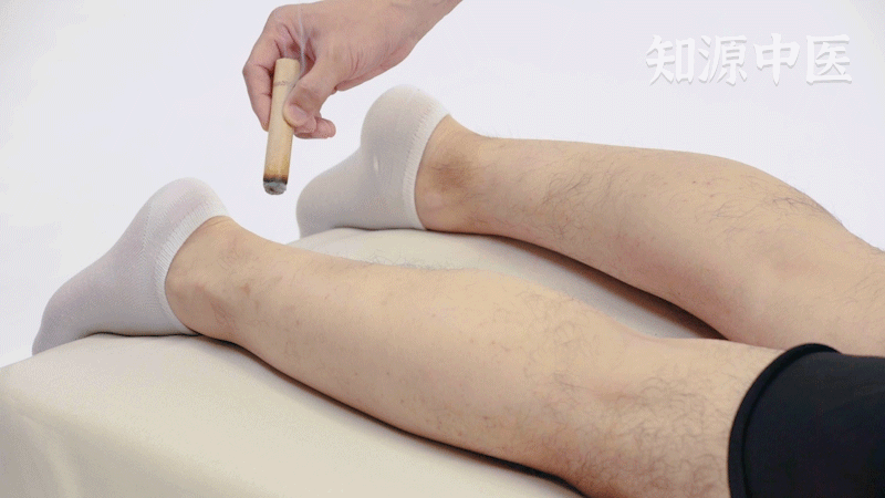 找到跗阳穴,用艾条距离皮肤3-5厘米,悬灸5-10分钟,可以治疗头痛、脚气等。