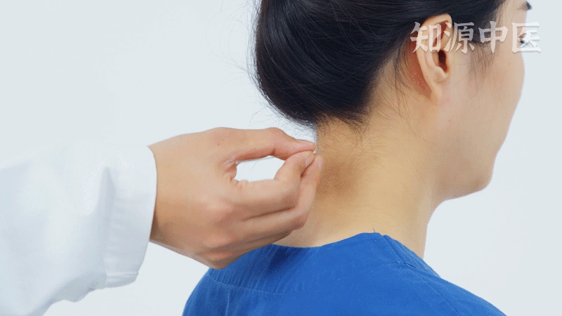 用针灸针直刺或向上斜刺0.5-1寸,可以治疗颈椎病、肩周炎、视物不清等证。