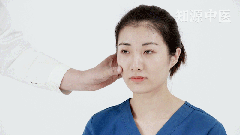 - 第2步:在面部颧骨最高点下缘可触及一凹陷,即为本穴。