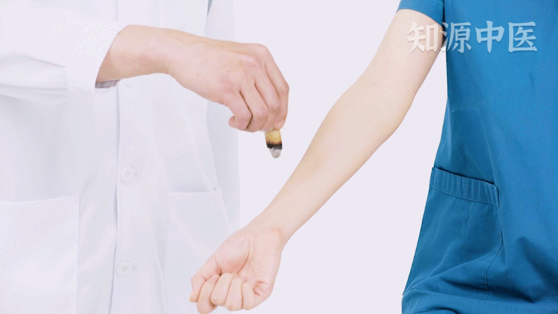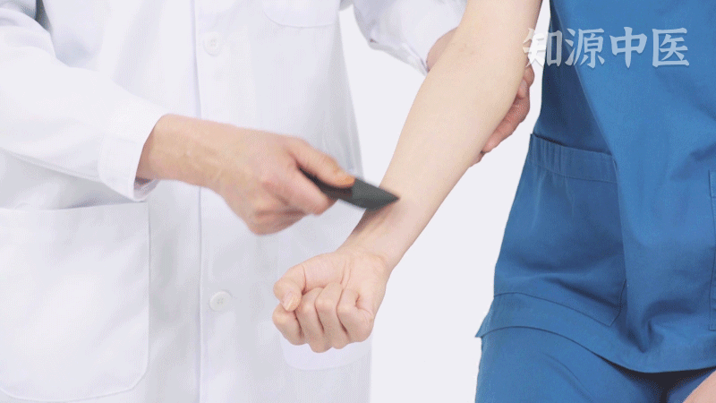 - 第2步:在前臂拇指侧可见明显突起的一条索筋(桡侧腕屈肌腱);