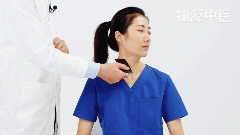 用角刮法从上向下刮拭人迎穴2-3分钟,隔天一次,可辅助治疗颈部淋巴结炎、瘿气等。
