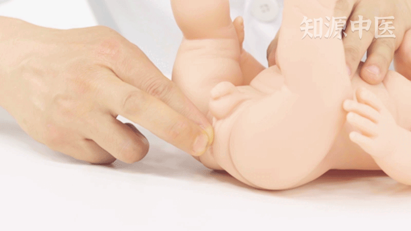 食指置于会阴穴上,中指放在食指上,两指用力对会阴穴进行按揉,力量要柔和,以酸痛为宜。可以辅助治疗小便不利 遗尿等证。