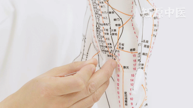 用针灸针直刺冲门穴0.5-1寸,可以治疗腹痛、手脚发凉。