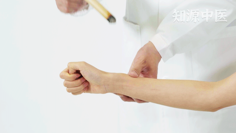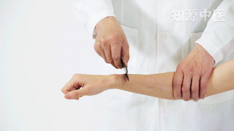 4.【针法】:横刺,向肘或腕方向斜刺0.3~0.5寸。
