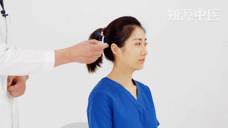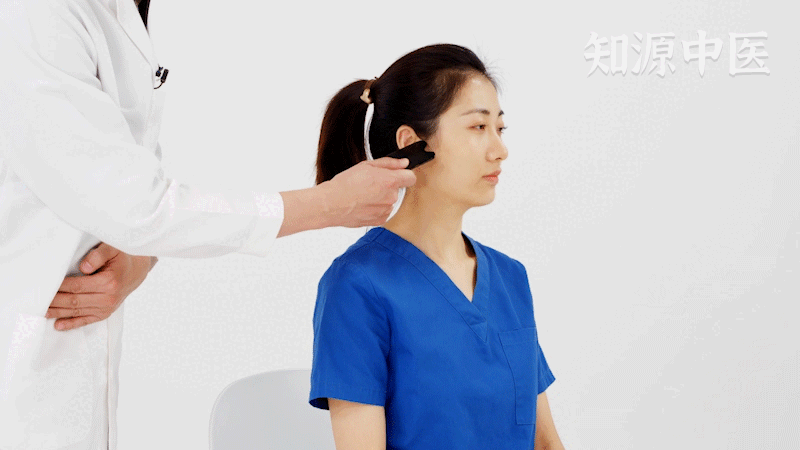 用刮痧板与皮肤呈四十五度,自上而下,对听宫穴进行单向地刮擦,每次三分钟左右,可以辅助治疗牙齿疼痛。
