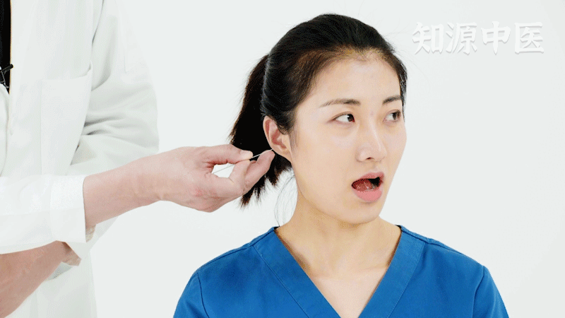 - 第2步:在耳屏前与下颌关节之间可触及一凹陷,闭口时凹陷即闭处,即为本穴。