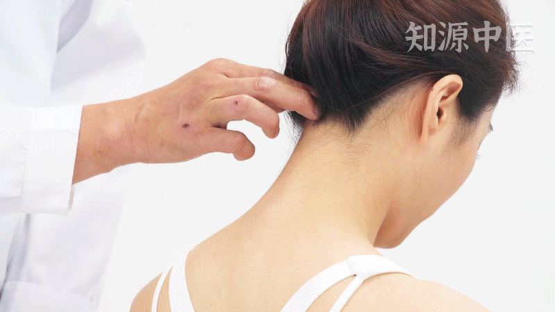 3.【其他常用取穴法】:仰头,在项后入发际0.5寸的凹陷处取之。