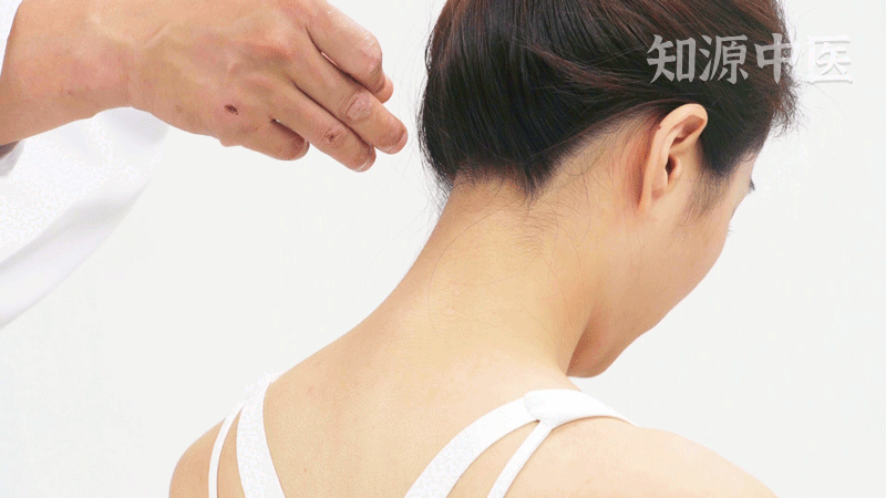 - 第2步:从后发际正中直上拇指半横指(大拇指指间关节部位的横径为1寸),按压有酸胀感处,即为本穴。