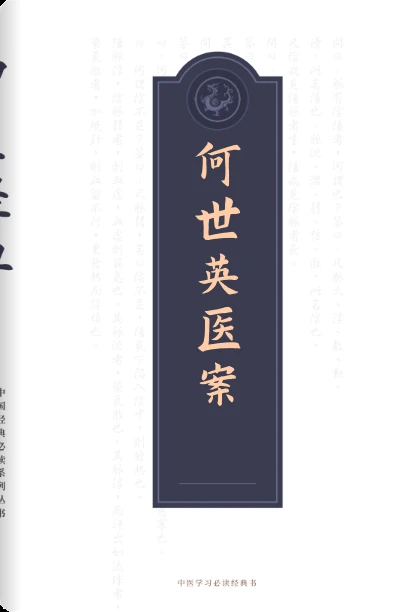 《何世英医案》是中国医书其中之一。何世英(1912~1990),中国近当代名老...